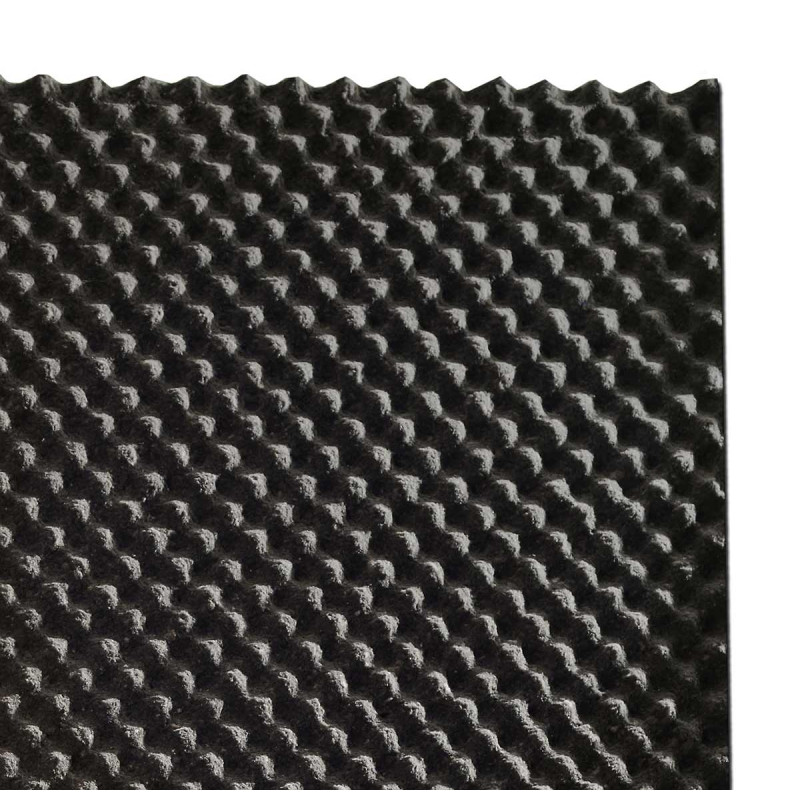 Consists of pieces of acoustic polyurethane foam, rubber, reinforcement fabric.